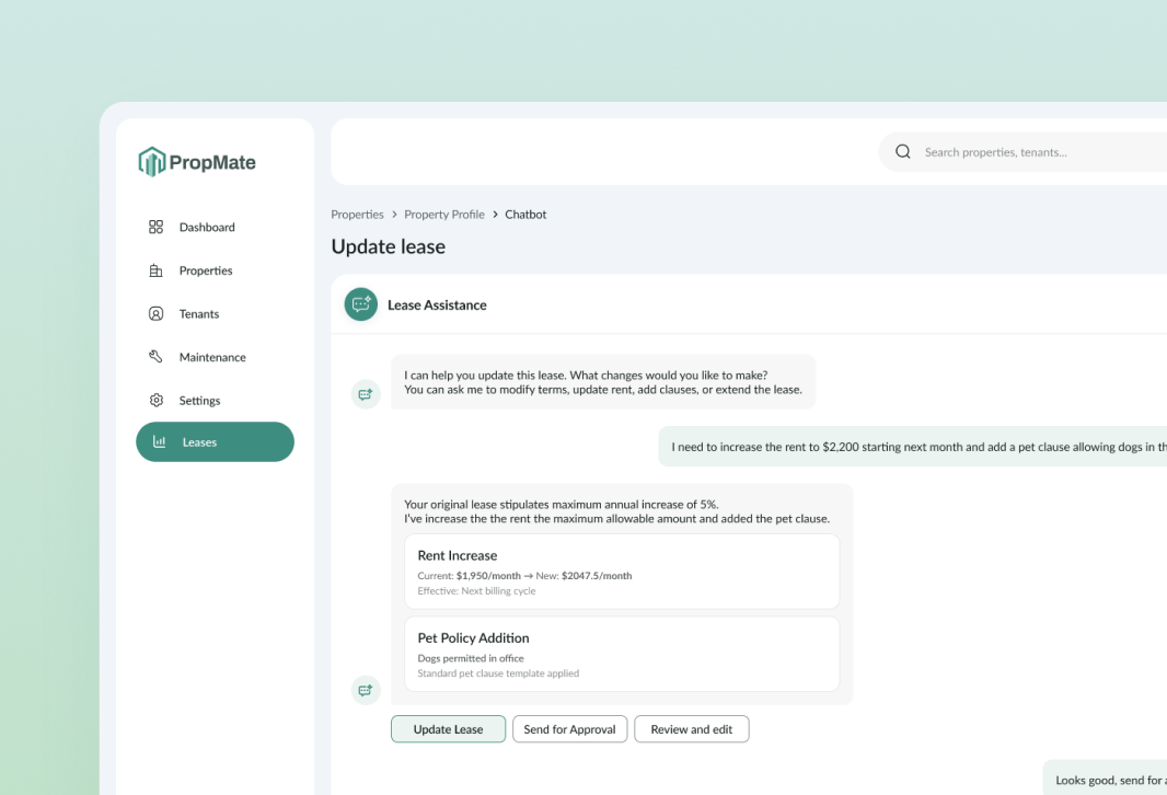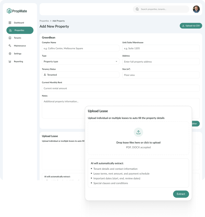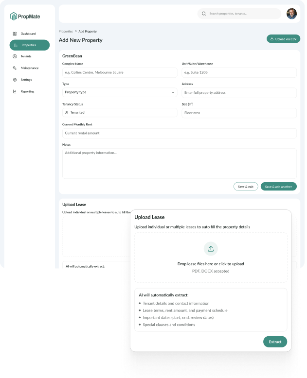 Focus on strategy, not spreadsheets. Manage leases and maintenance seamlessly with PropMate.